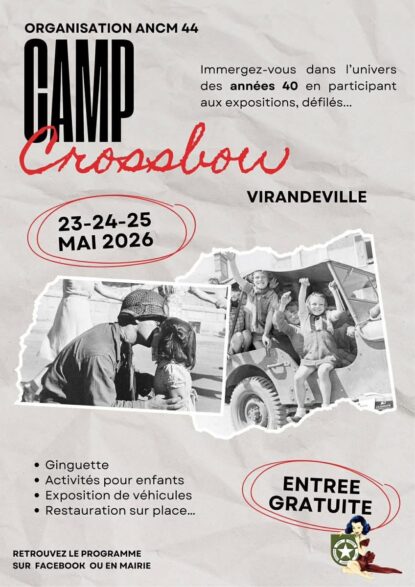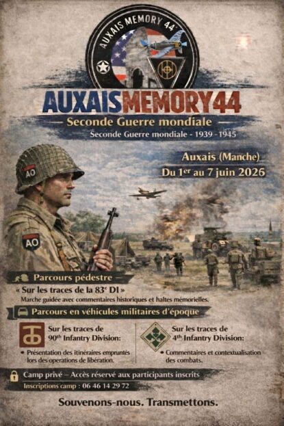 CatégorieSalonReconstitutionRassemblement VéhiculesExpositionCommémorationBourse militaireLocalisation (Département / Région / Pays)Vosges (88)Vaucluse (84)Var (83)TARN 81Somme (80)Seine Maritime (76)Seine et Marne (77)Royaume-UnisPas de Calais (62)Paris (75)Oise (60)Nord (59)Moselle (57)Morbihan (56)Meuse (55)MayenneMarne (51)Manche (50)Maine et Loire (49)LUXEMBOURGLoiret (45)Loire Atlantique 44Isère (38)Indre et Loire (37)Haute Savoie (74)Haut Rhin (68)Gironde (33)Gard (30)FranceEure et Loire (28)Eure (27)Essonne (91)Essonne (91)Côtes d'Armor (22)Côte d'Or (21)Calvados (14)Bouches du Rhone (13)BelgiqueBas-Rhin (67)Ardennes (08)AllemagneAisne (02)Rechercher Rassemblement VéhiculesReconstitutionULBEEK ( Belgique)22 mai 202624 mai 2026ExpositionRassemblement VéhiculesReconstitutionFort de SCHOENENBOURG (67)23 mai 202625 mai 2026ExpositionReconstitutionLA FERTE ALLAIS (91)23 mai 202624 mai 2026CommémorationRassemblement VéhiculesReconstitutionNEUCHATEL-HARDELOT et NESLES (62)23 mai 202625 mai 2026Rassemblement VéhiculesReconstitutionVIRANDEVILLE (50)23 mai 202625 mai 2026ExpositionReconstitutionMONTMEDY (55)23 mai 202624 mai 2026CommémorationExpositionRassemblement VéhiculesReconstitutionBLAYE (33)23 mai 202625 mai 2026ExpositionRassemblement VéhiculesReconstitutionQUESNOY sur AIRAINES (80)30 mai 202631 mai 2026Bourse militaireBourse d’ ECAUSSEVILLE (50)1 juin 20262 juin 2026CommémorationExpositionRassemblement VéhiculesReconstitutionAUXAIS (50)1 juin 20267 juin 2026CommémorationExpositionReconstitutionCARENTAN LES MARAIS (50)1 juin 20268 juin 2026Bourse militaireCommémorationExpositionRassemblement VéhiculesReconstitutionCAMP TEXAS (50)3 juin 20267 juin 2026 1 2 3 4 5 6